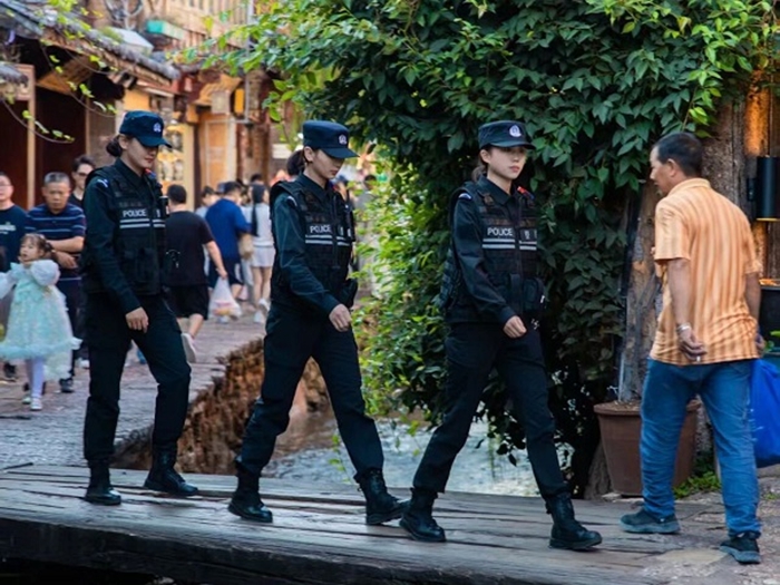 在丽江古城的小巷里,她们身着武装装备,步伐坚定地开展巡逻,身影与古城美景相融,成为守护游客与市民安全的“流动防线”;在尘土飞扬的工地现场,她们认真核验人员信息、细致排查安全隐患,用细心和耐心筑牢安全底线。