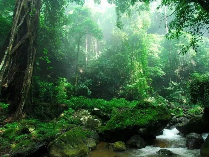在西双版纳州热带雨林深处,时光仿佛被雨林染成了绿色。在这里,千年古木参天,藤蔓交织成网,晨雾与生机一同在林间弥漫。