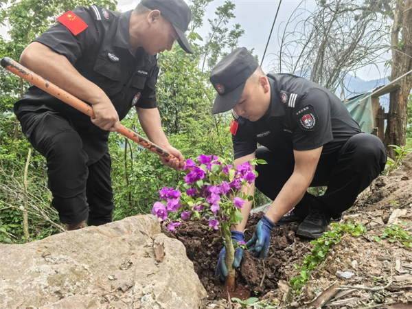 陶乔顺的守边,不仅有直面艰险的无畏,更有以所为家的温情,他把对这片土地的热爱,融入日常的点滴细节中,让雨林中的边境联防所变成了温暖的“家园”,也让守边人的“家国情怀”,在边境线上深深扎根。初到联防所,他便想着如何让队员们在艰苦的环境里能有归属感、幸福感,于是特意从家乡宜良运来三角梅树苗,亲手栽在营区的空地上。他常对队员们说:“三角梅耐贫瘠、耐干旱,越是向阳越灿烂,越是艰险越向前,这像极了我们守边人。”在他和队员们的精心照料下,三角梅在边境的土地上扎根、绽放,成为029联防所旁最亮丽的色彩,也成为守边人坚韧品格的生动写照。