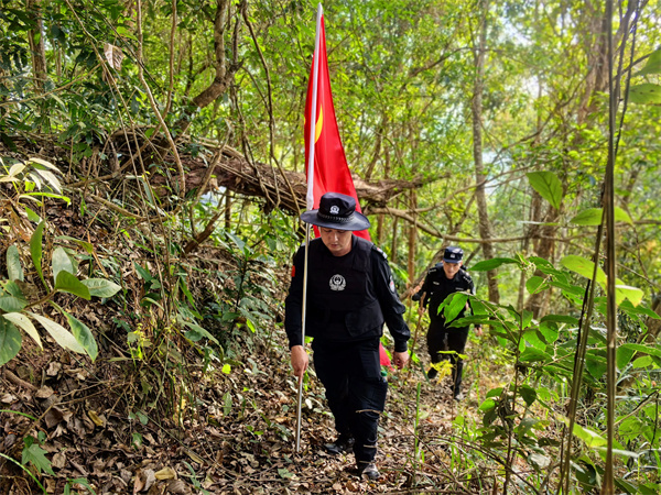 危急时刻的从容应对,是陶乔顺守边担当的最直接写照。一个闷热的午后,他带领队员开展例行巡逻,行至边境物理拦阻设施附近时,10余米外突然传来一声枪响,打破了雨林的宁静,所有人的神经瞬间绷紧,透过灌木缝隙,两名手持猎枪的边民出现在视野中。在这千钧一发之际,陶乔顺脑海中闪过无数应对方案,他深吸一口气,缓缓站起身,用沉稳的声音朝对面喊话,配合着清晰的手势示意边界所在。对方愣神几秒后,收起猎枪匆匆离去,一场突发险情被妥善化解。事后谈及此事,陶乔顺的话语朴实而坚定:“那一刻心里只有一个念头,守住边境,护住国土,半步都不能退。”