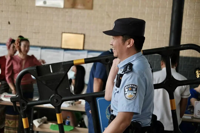 白天,他带队对活动场地开展安全隐患排查、对周围村民开展普法宣传。担心寨子里的老人听不懂汉语,他就录制“双语”安全防范宣传录音,并发到各村微信群,再在村寨广播里循环播放,生怕漏掉一个村民。