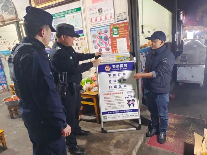 一块“接地气”的提示牌,敲响法治警示钟。“不要打架,打输住院,打赢坐牢”,直白有力的警方提示牌,被醒目地放在辖区村口、集市、宾馆旅店、娱乐场所、烧烤夜市等人员密集区域。曲石派出所摒弃晦涩的法律条文,用群众听得懂的“大白话”剖析打架斗殴的双重危害,既直观又深刻,让“打架无赢家”的理念深入人心。曲石派出所同步通过村级广播、微信群转发等形式扩大宣传覆盖面,将宣传牌打造成流动的“法治课堂”,有效从思想上遏制了冲动滋事行为。
