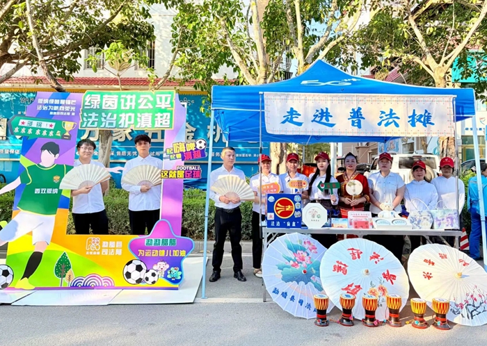 近日,西双版纳州勐腊县司法局依托滇超联赛的火热氛围,精心筹划了一期以“非遗普法遇上滇超联赛”为主题的普法宣传活动,将非遗、法治宣传、体育竞技深度融合,用群众喜闻乐见的形式,让法治宣传更鲜活、更接地气、更具感染力。