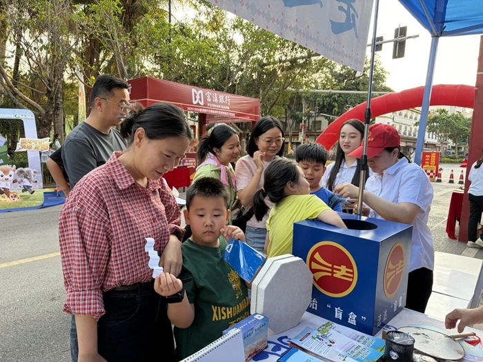 活动现场热闹非凡,独具法治特色的滇超联赛主题打卡点与非遗普法摊位,将法治宣传与傣族非遗元素融入其中,成为赛场外一道亮丽的法治风景线,不少球迷、游客纷纷驻足拍照打卡,在轻松愉悦的氛围中近距离感受法治文化魅力。勐腊县司法局还增设普法“盲盒”互动环节,群众现场抽题作答即可赢得普法小熊、法治冰箱贴、法治抽纸、法治围裙等实用小礼品,大家踊跃参与,在寓教于乐中学习法律知识。摊位上,傣纸手工制作的法治伞、法治傣扇、法治礼盒等非遗文创产品整齐陈列、格外吸睛,将傣族传统技艺与法治理念巧妙融合,既彰显非遗韵味,又传递法治精神,深受现场群众欢迎。