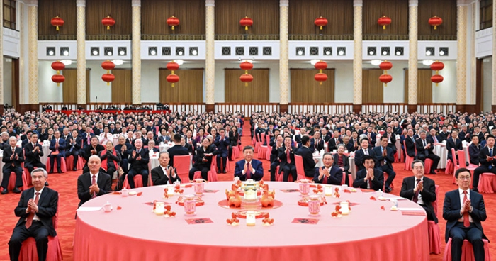 2月14日,中共中央、国务院在北京人民大会堂举行2026年春节团拜会。党和国家领导人习近平、李强、赵乐际、王沪宁、蔡奇、丁薛祥、李希、韩正等同首都各界人士欢聚一堂、共迎佳节。新华社记者 谢环驰 摄