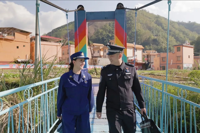 2023年,得知河口消防救援大队招录文员的消息,黄增萍没有丝毫犹豫。她毅然辞去昆明市人民法院那份令人羡慕的稳定工作,告别城市的繁华便利,来到偏远的莲花滩乡,只为与丈夫并肩作战,把家安在边疆。同年10月,莲花滩“夫妻警务室”正式挂牌成立,“藏青蓝”与“火焰蓝”的身影从此成为村寨山间最动人的风景。他们把警务室当成真正的家,把群众的事当成自家的事,白天一同走访入户,夜晚并肩值守巡逻,用朝夕相伴的陪伴与矢志不渝的坚守,诠释着“最浪漫的事就是与你共守边疆”的动人情怀。