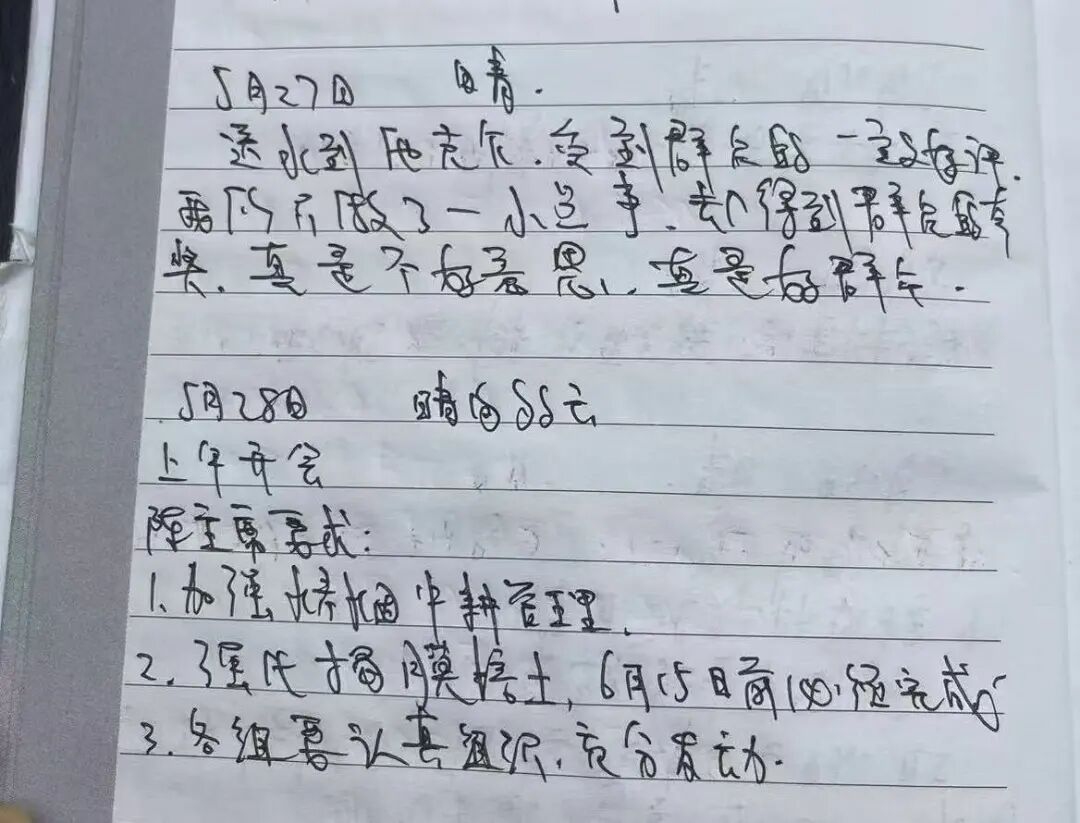 群众的一句肯定,便是他前行的动力。“送水到他克乍,受到群众的一致好评,我们只做了一小点事,却得到了群众的夸奖,真是不好意思,真是好群众。”简单的话语里,藏着他发自内心的谦逊与对群众的深厚感情。在他心里,为群众做的永远太少,群众给予的永远太多。面对工作的繁琐,他也曾写下疲惫,却又笔锋坚定地勉励自己:“事关群众利益,再累也值得。”那时的他,心怀滚烫初心,早已把“值得”两个字,写进了一生的信仰里。