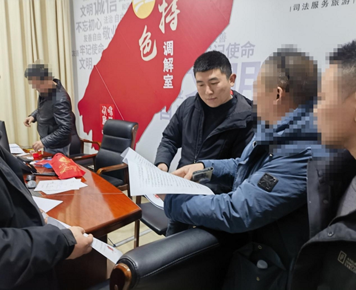 调解一度陷入僵局。劳务公司表示工程款尚未完全到位,总包方则反复核算工程量。关键时刻,在场提供法律支持的古城区人民法院旅游专门法庭干警介入,厘清了各方法律责任,明确指出总包方对农民工工资支付承担连带责任。又经一个多小时协商,各方最终达成一份分期支付的调解协议草案。