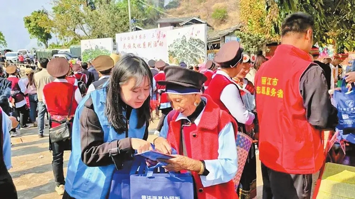 玉龙县综治中心工作人员在民俗文化节活动中为群众提供法律咨询
