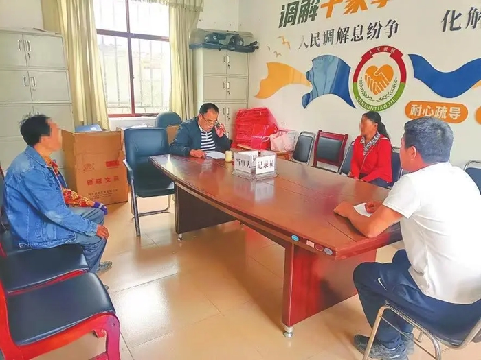 玉龙县石头乡综治中心工作人员调解婚恋纠纷