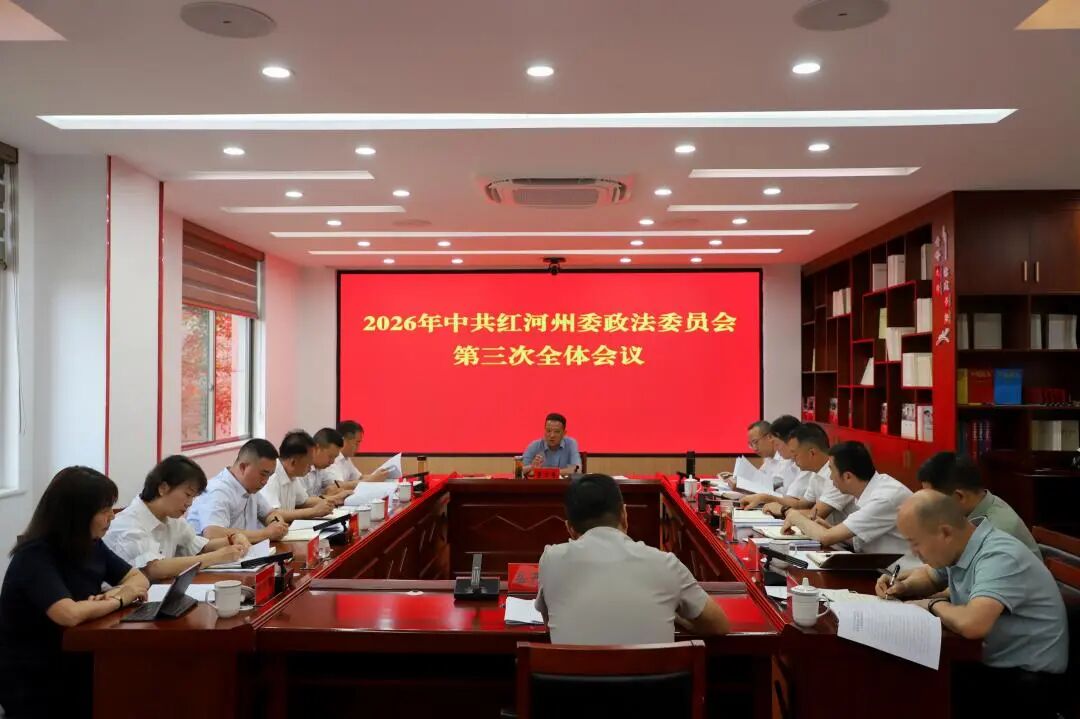 4月17日,中共红河州委政法委员会召开2026年第三次全体会议,学习贯彻党中央及省委有关会议、文件精神,研究贯彻落实州委常委会第157次会议以及州委专题会议、专题调度会议精神有关工作,审议执法司法专项检查情况报告,听取州级政法单位1月至3月工作情况汇报,安排近期全州政法重点工作。