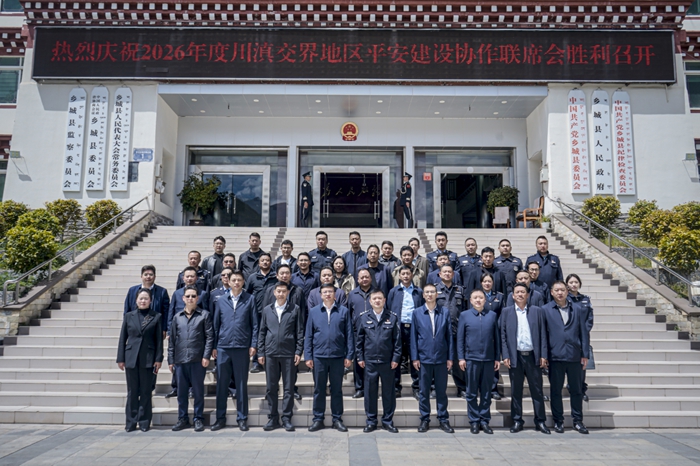 为深入贯彻2026年全州虫草采挖工作视频调度会部署要求,切实履行川滇交界地区平安建设协作联席会轮值主席县职责,持续巩固深化甘孜、迪庆两州三县(市)交界平安建设协作成果,全力保障虫草采挖季安全有序,近日,2026年度川滇交界地区平安建设协作联席会在四川省乡城县召开。会议以“深化协作、巩固成果、共创平安—持续推进新时代川滇交界地区和谐稳定”为主题,总结交界区域联合管控成效,分析当前稳定形势,审议年度工作方案,推动跨区域平安建设协作走深走实。